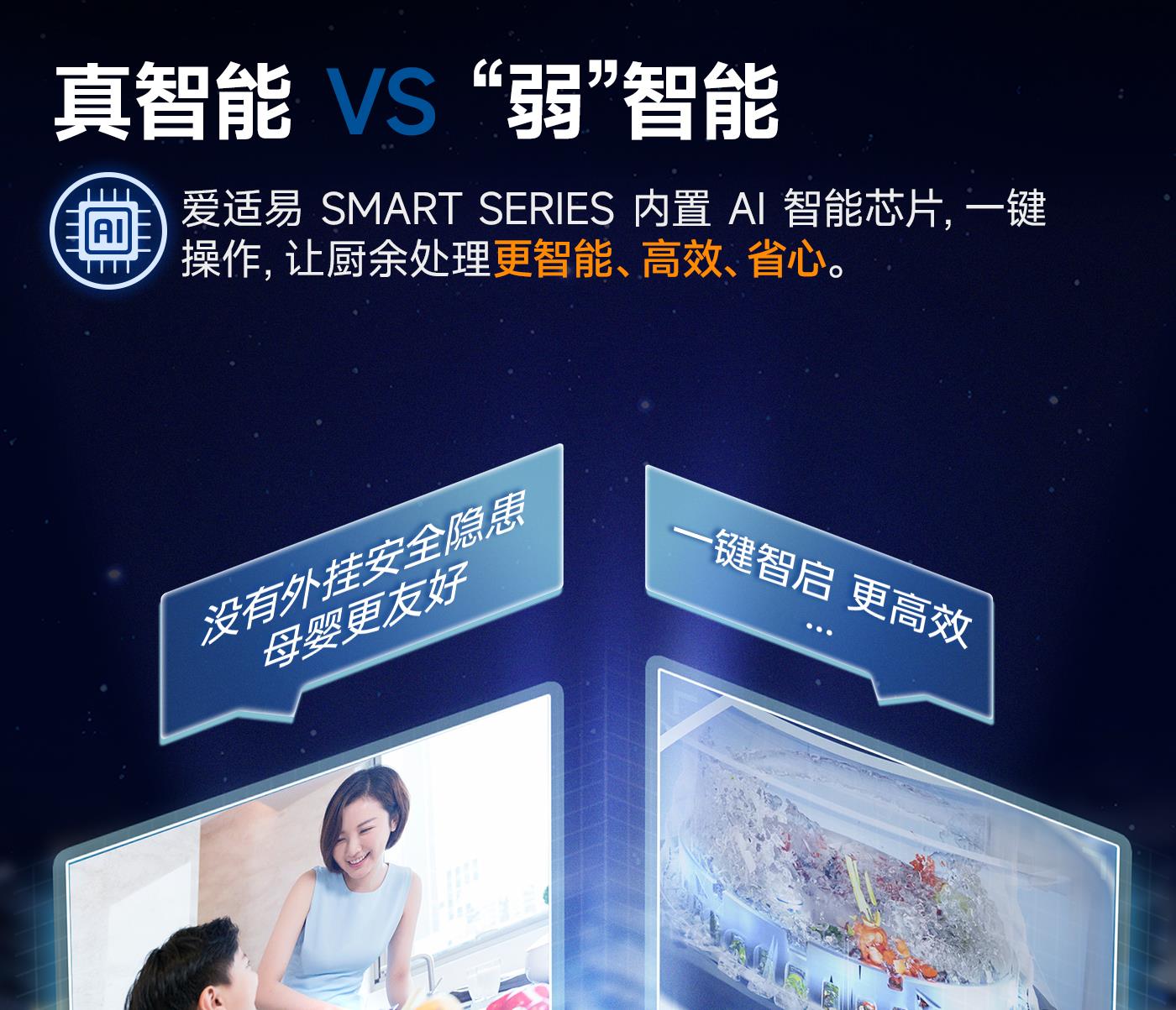 爱适易SMART SERIES源自美国本土研发,搭载AI内嵌智能芯片,结合MultiGrind®多重研磨技术,深度感知并精细化处理多种食物残渣。真正实现只需一键轻启,即可将繁琐交予智能,让前沿科技为您守护无忧的烹饪时光。