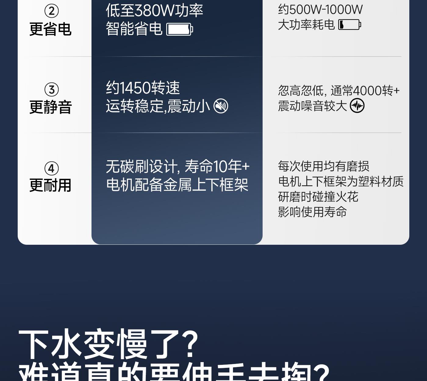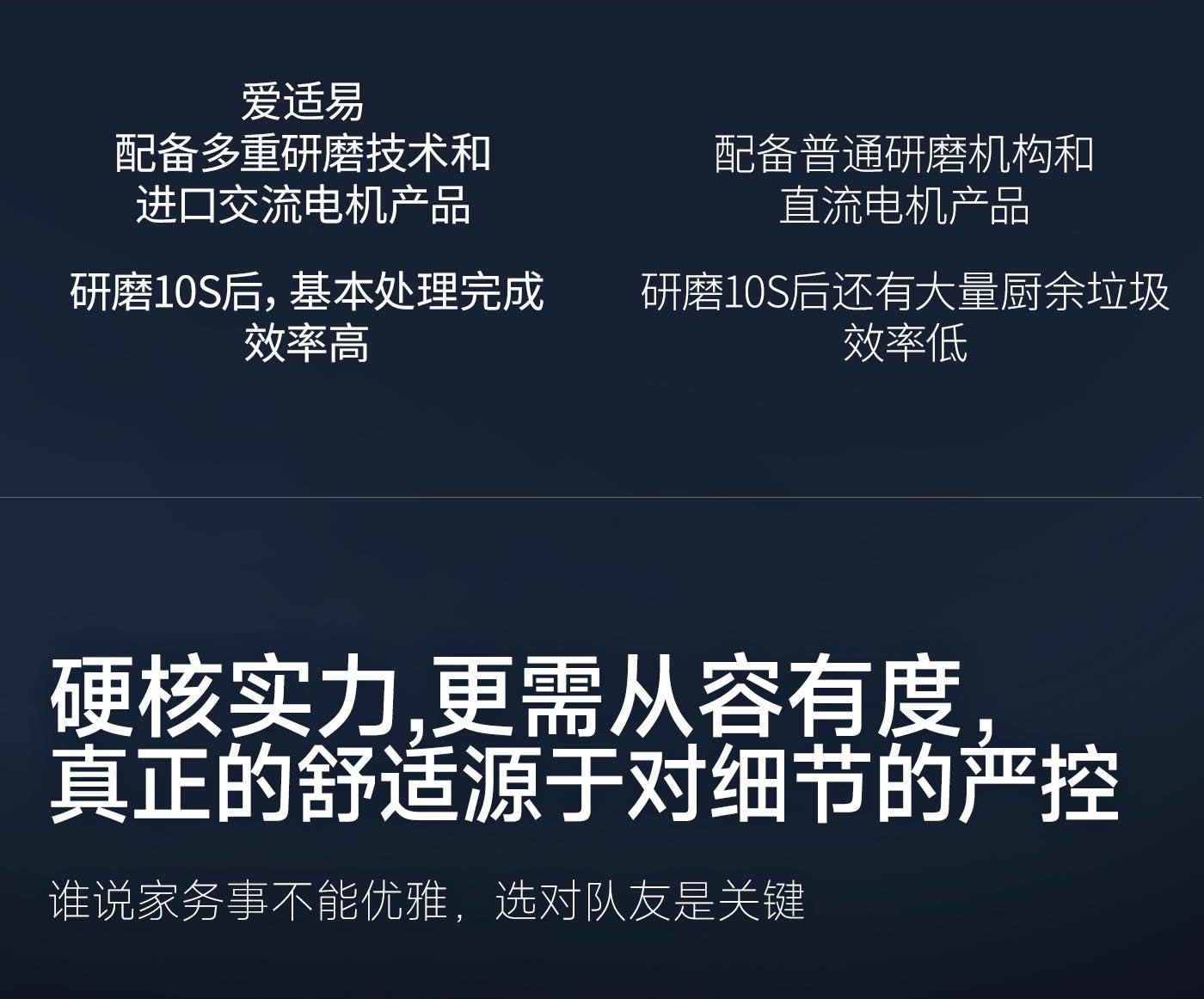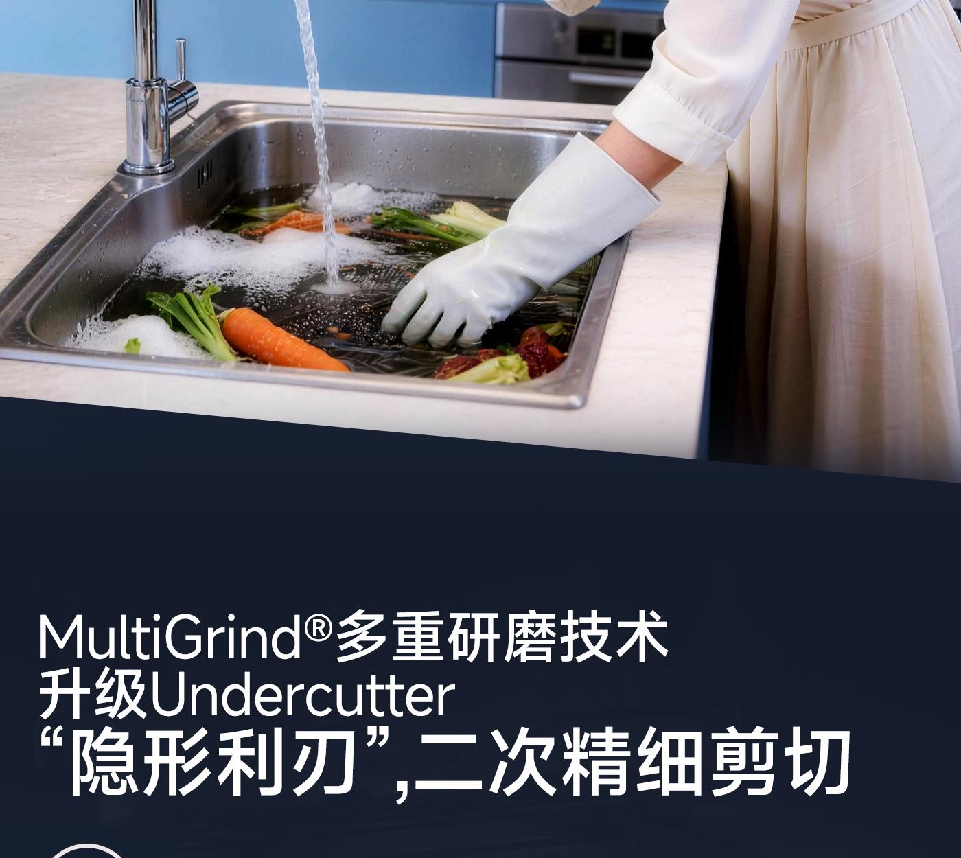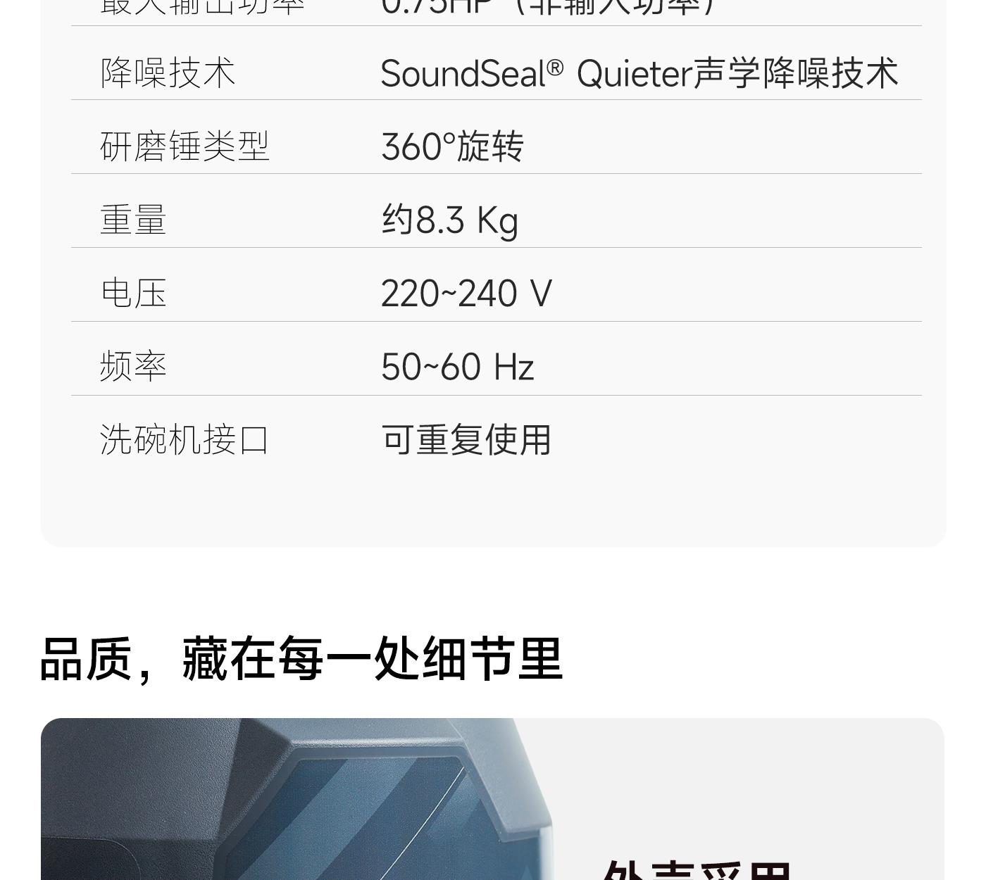 声学降噪技术。让您在享受高效研磨、轻松处理各类坚硬厨余的同时,也能静享舒适烹饪时光。